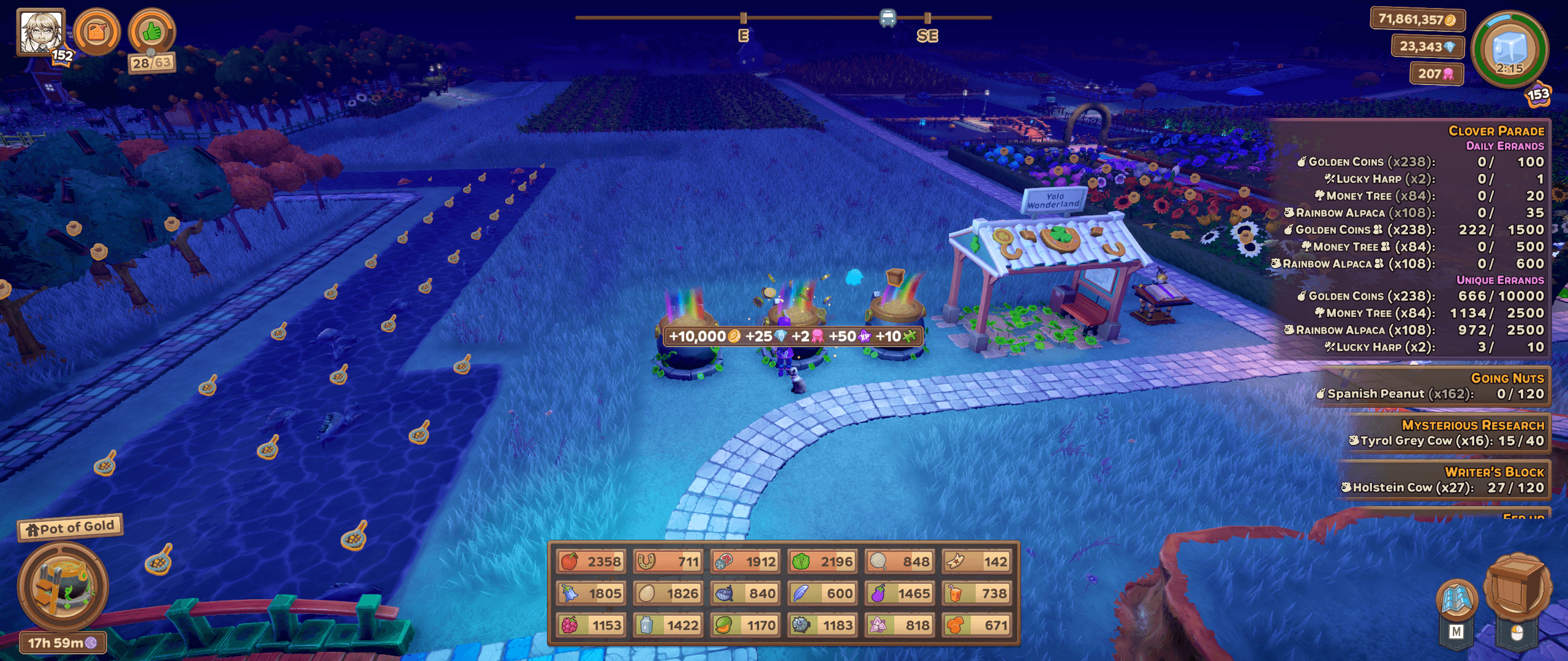 The Clover Parade event has a LOT of cool unlockables, it's basically a mini-DLC. The pot of gold generates diamonds, ribbons, and puzzle pieces every 18 hours and is by far the best passive building I have. I unlocked a bunch of frankly cool fences and a much needed extra border. The stuff is all clover/celtic-knot themed and it works well as normal decorative pieces, whereas some of the event stuff like the valentine's day path is a bit too holiday-centric to really fit in as general decorations. I would say this is the second best event I've played so far, next to the Halloween one which was so cool I devoted nearly a whole plot to event unlockables and that theme area is one of my favorites on my farm.