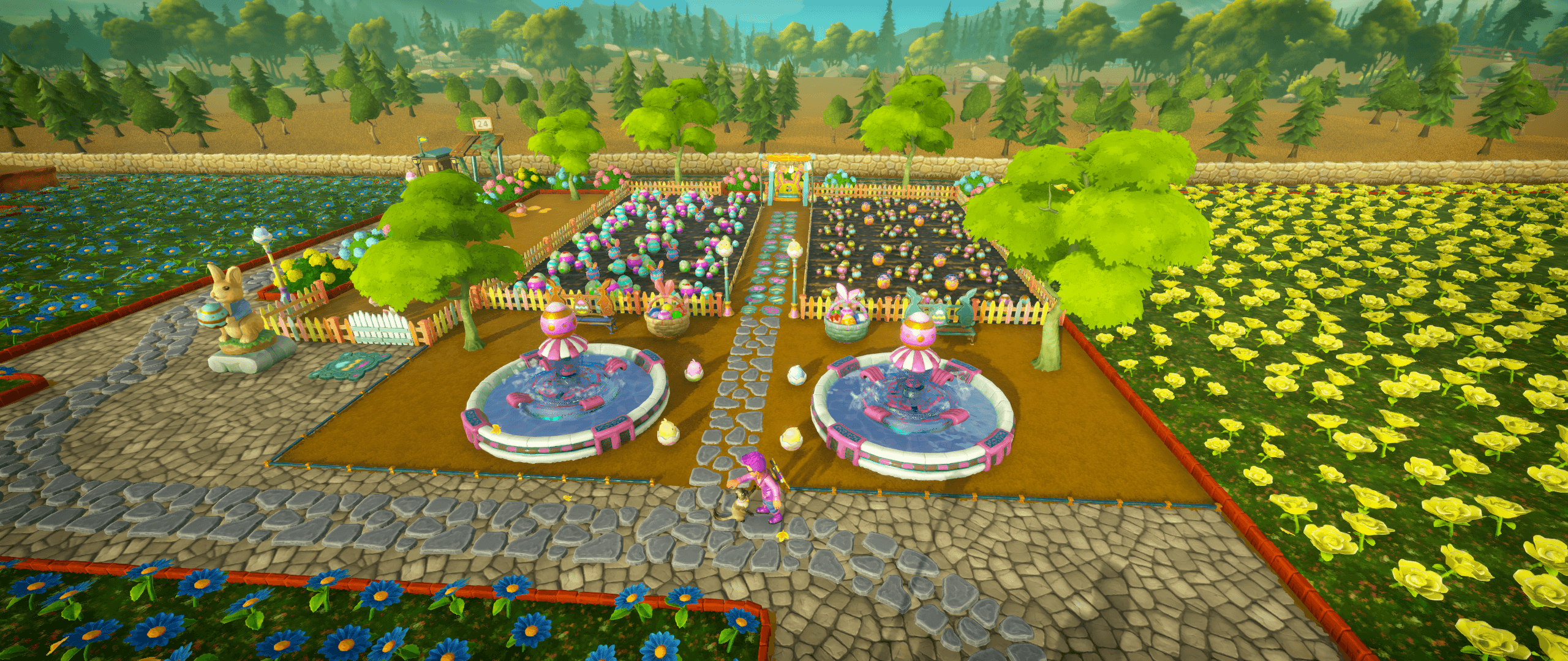 Inspiration struck, and I now have an easter zone situated near my rabbits. As soon as I finished, I realized I hadn't unlocked the bridge yet, so it's gonna be a work in progress.