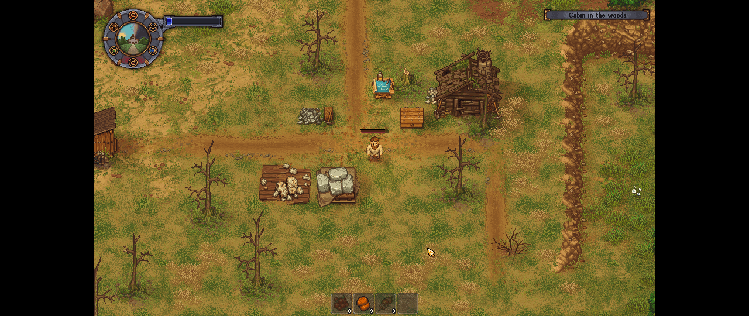 Finally made the circular saw, which is needed to make beams. Doing so allowed me to break down all the rubble piles in the basement, so now they are all connected to the morgue. This reduces travel time somewhat. I also got around to completely repairing the cabin in the woods. This is an area where you can carve up slabs of marble, stone, and ore (which can only be carried one at a time) into much more manageable pieces that can be carried in inventory. There's a coal vein nearby as well.