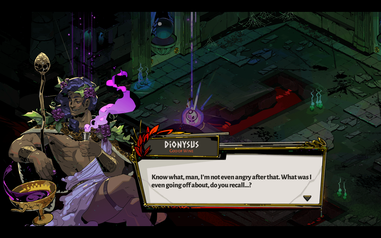 Normally, I try not to get too butt-hurt about my inability to beat certain games, but I always felt kinda bad I never beat Hades. As I mentioned before, I think I put about 30 hours into it on the Switch and I got to the fourth level, but I'd never gotten to the final boss. And unlike games like Hollow Knight or Silksong, this was a game I felt I should be within my reach. Now, I understand a big part of the problem was I wasn't approaching it in a strategic way. God mode helps in more ways than one, because I knew no matter what happened on any given run, I'd always at least get a little tougher.