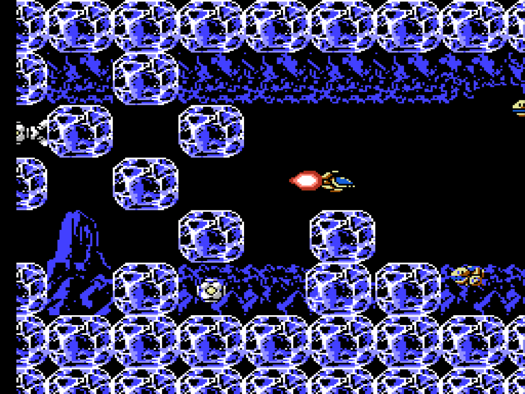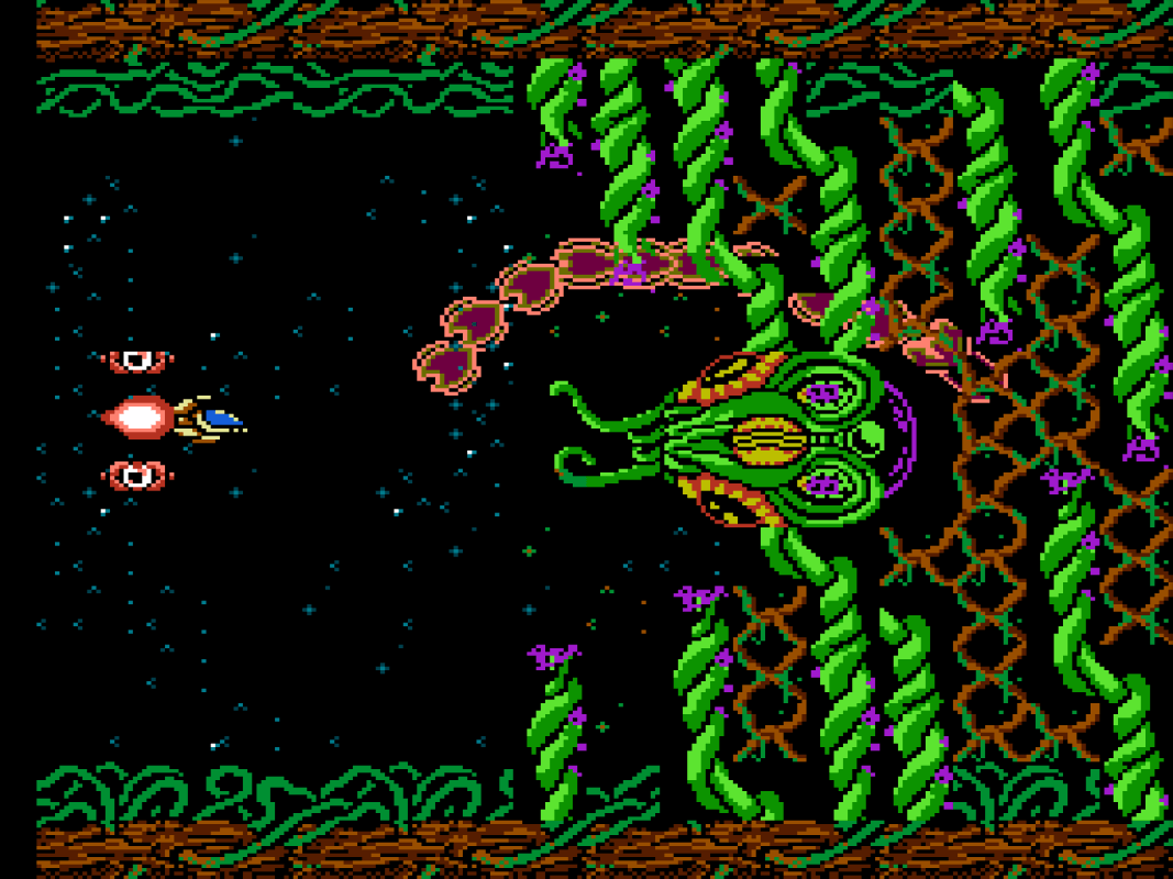 I recently went on a Gradius-like shmup kick and decided to focus my efforts on the NES. Over Horizon is a really cool horizontal shooter with a DIY option to customize your ship. I love the graphics on this one and the environmental puzzles are clever and interesting. You can fire forward and backwards, and part of the strategy is knowing (or anticipating) environmental hazards and knowing what side of the screen enemies will emerge. It has infinite continues, which I greatly appreciate as I'm currently stuck on stage 4.